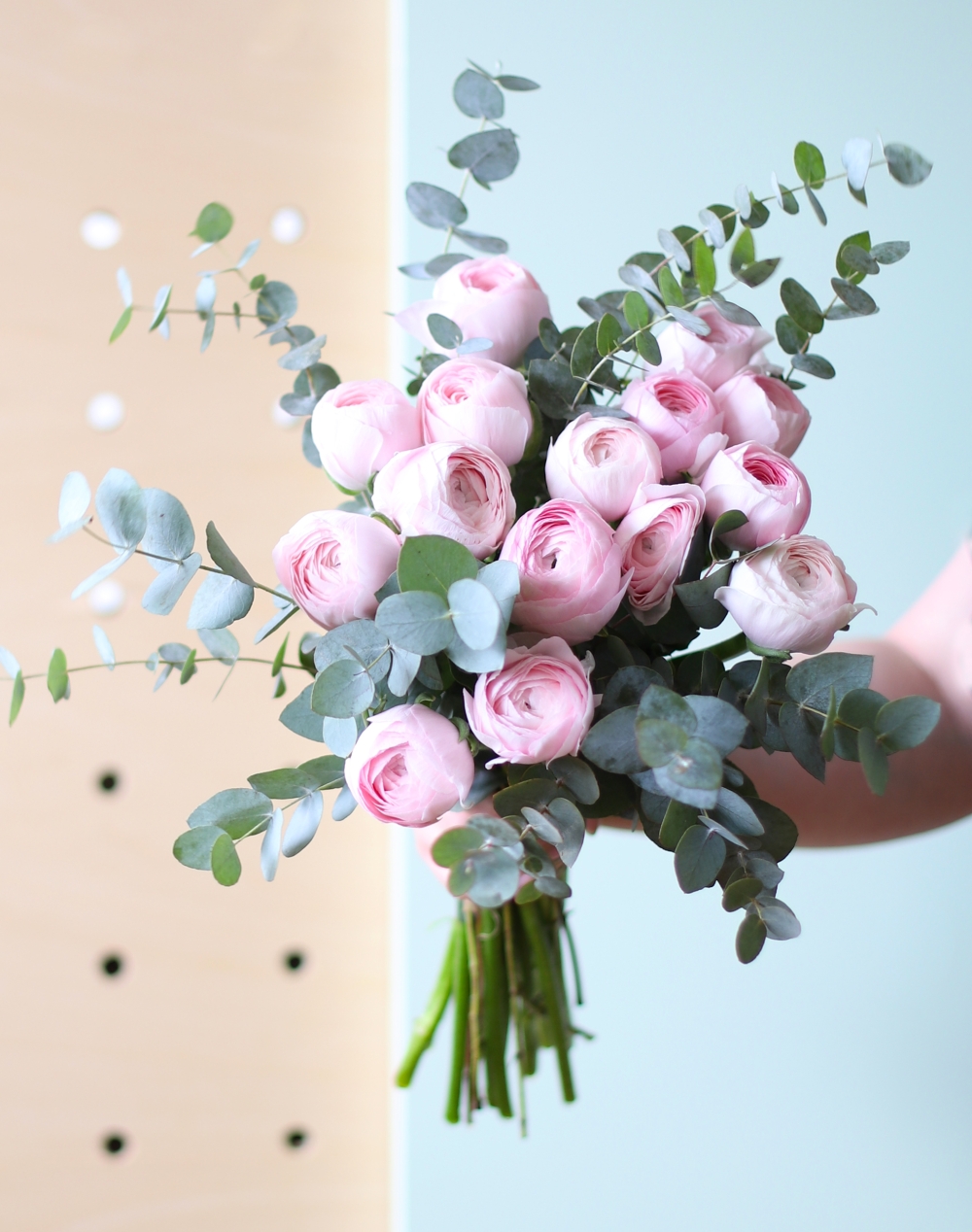 La nuance de rose et la variété des Renoncules peuvent varier.
