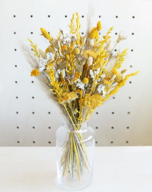 Le bouquet en fleurs séchées Soleil d'été ajoute une touche coloré et lumineuse à votre intérieur.
