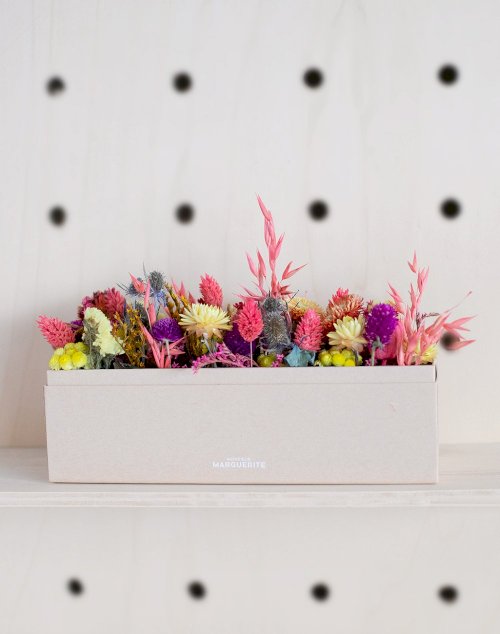 Notre grand jardin fleuri Acidulé en fleurs séchées a été imaginé avec Amour par nos Artisans Fleuristes.